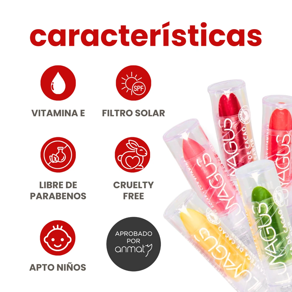 Nuestros Bálsamos Labiales tienen sabores irresistibles (banana, cereza, frutilla, tutti frutti y menta) 🍓🍒🍌🍉🍃 Su fórmula con Vitamina E, filtro solar y libre de parabenos es apta para niños y perfecta para el cuidado diario de los labios.